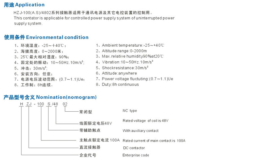 HZJ-100A/S/D-4801直流接触器